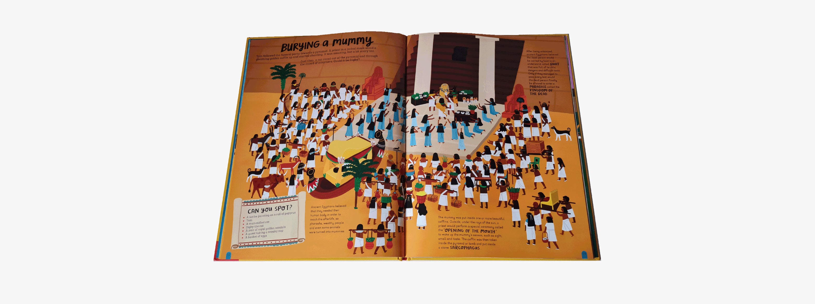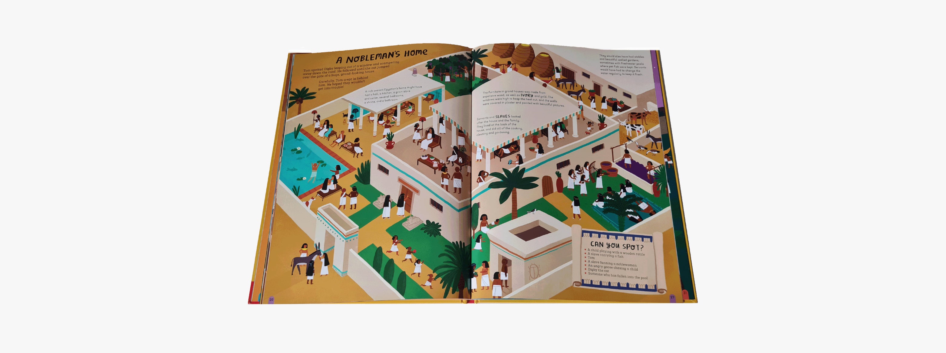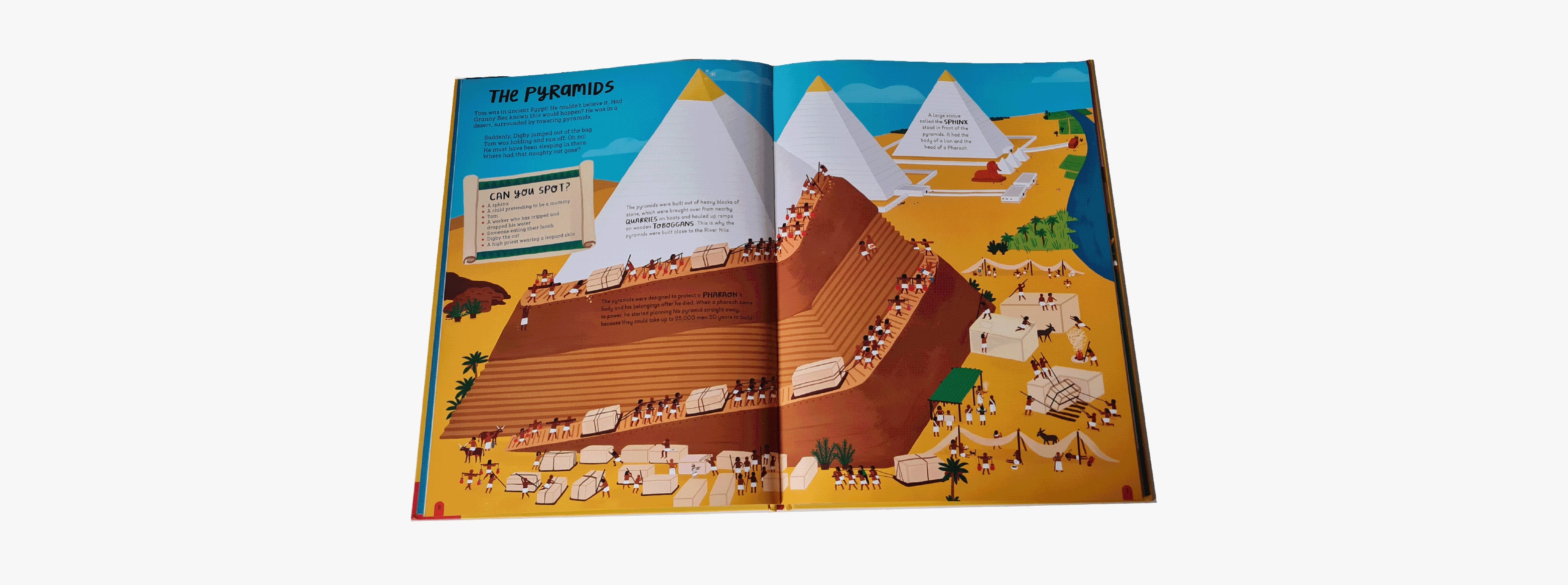Tom's not only lost in time, he's lost his cat, too! Can you find Tom and his naughty cat, Digby, on every page? Packed with detailed artwork, fascinating ancient Egyptian facts and over 100 other things to find - from a sphinx missing a paw to a child dressed up as a mummy - lose yourself in ancient Egypt with this brilliantly interactive book!