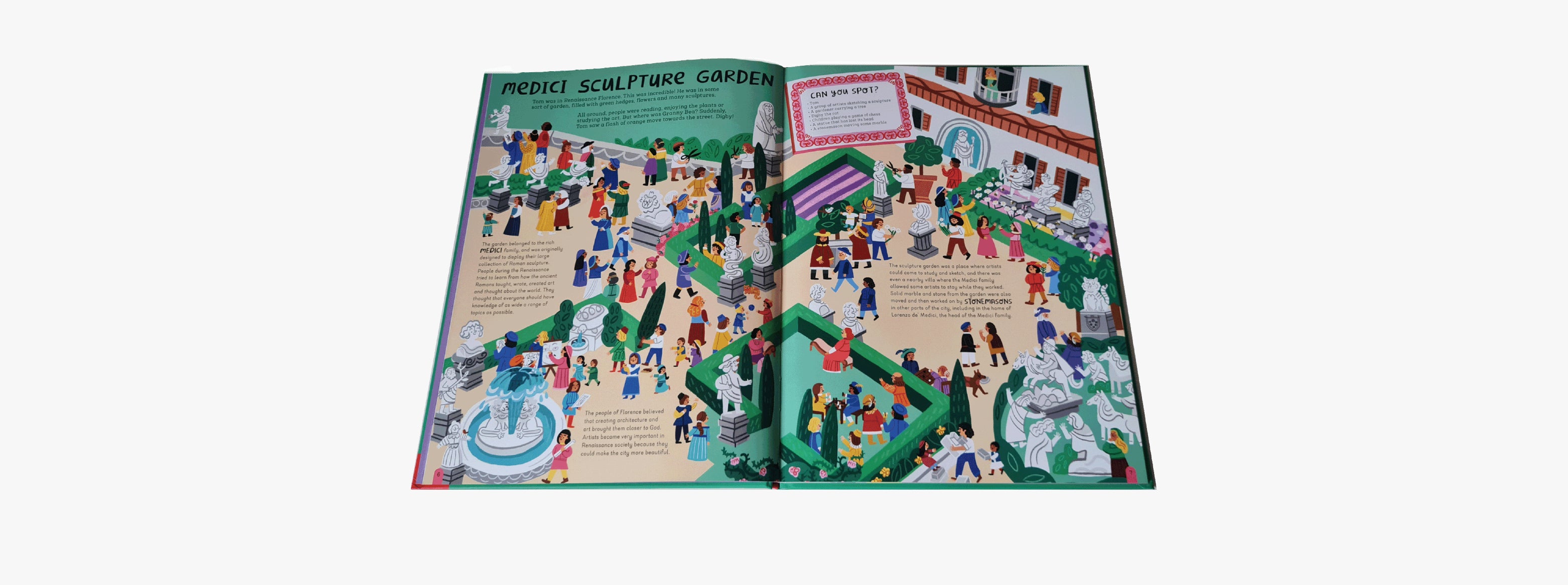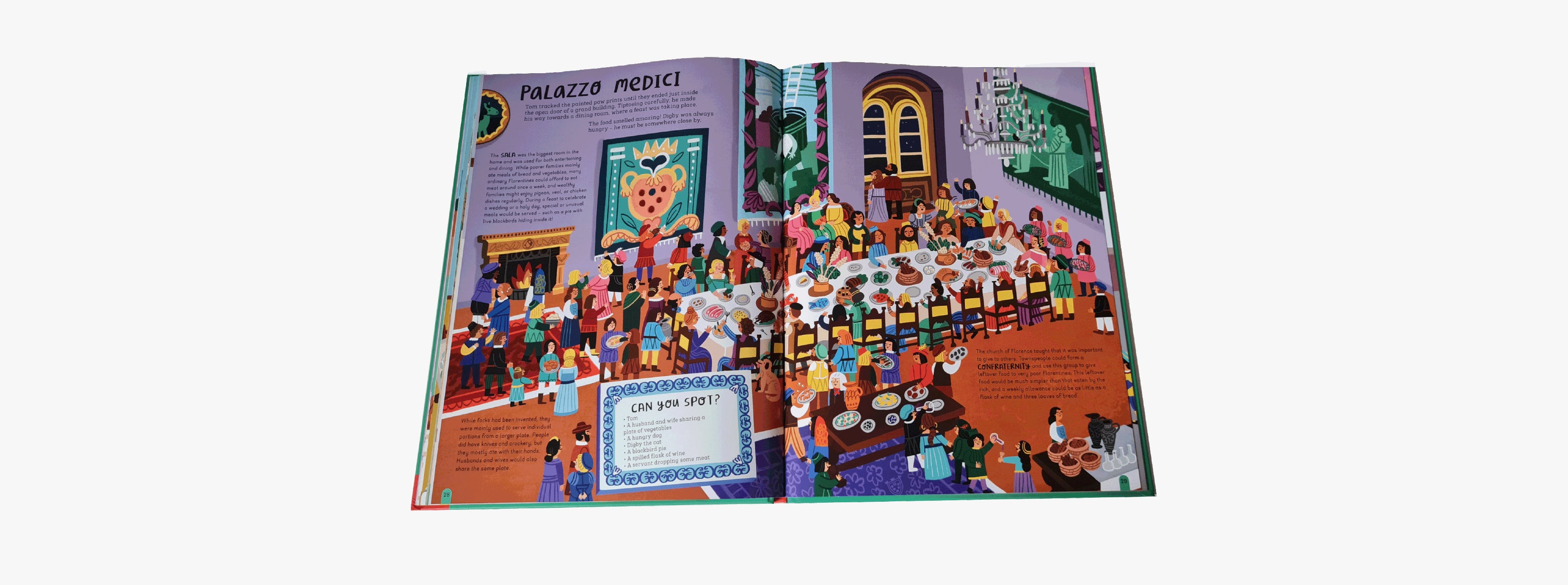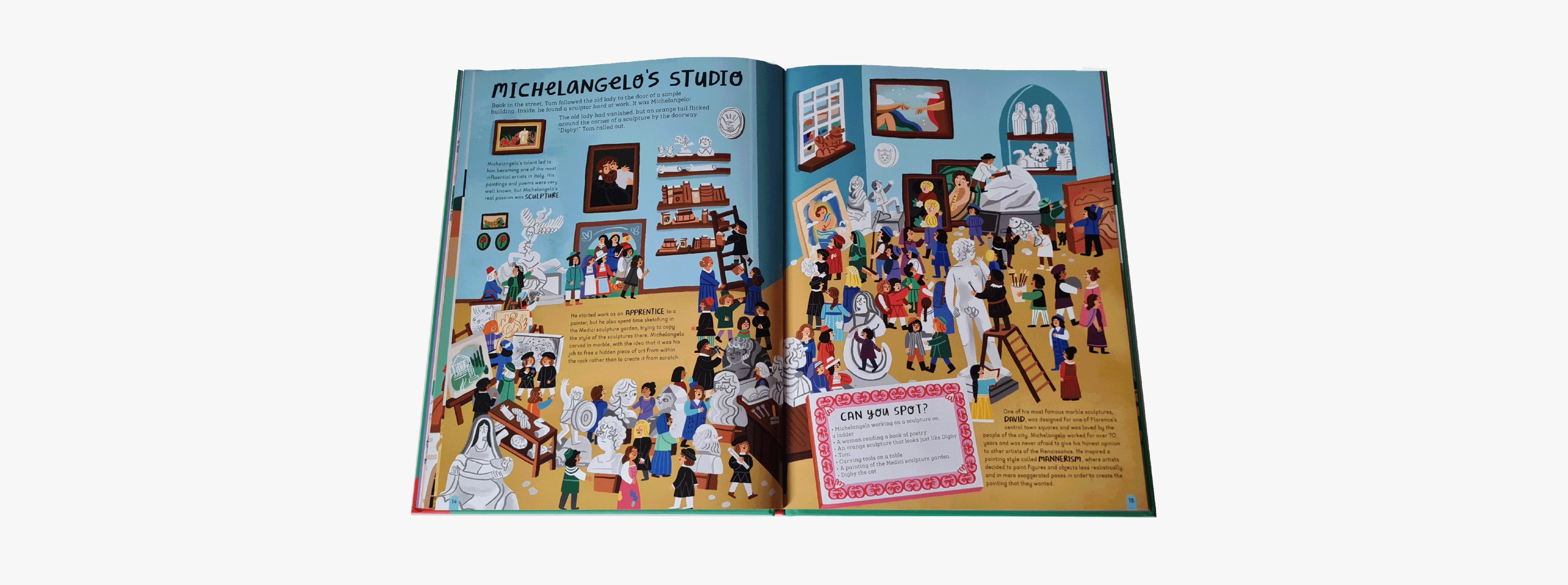 Tom's not only lost in time, he's lost his cat, too! Can you find Tom and his naughty cat, Digby, across the pages? Packed with detailed artwork, fascinating renaissance Florence facts and over 100 other things to find - from an apprentice working on a sculpture to a juggler at a carnival ball - lose yourself in Michelangelo's Italy with this brilliantly interactive book!